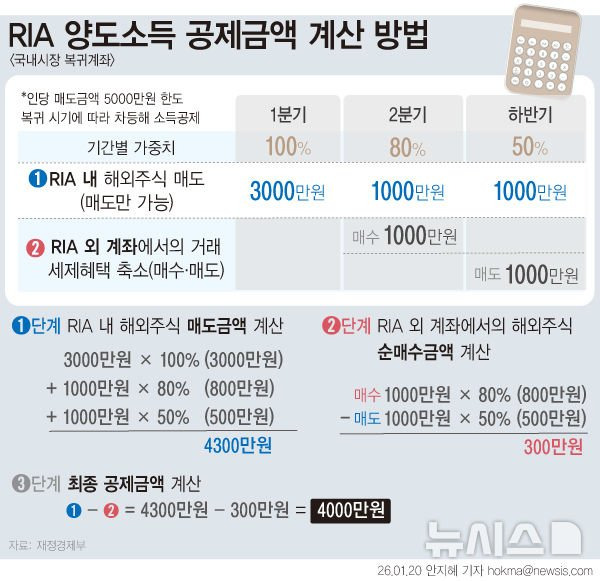 2026년 1월, 증권업계는 국내시장 복귀계좌(RIA) 출시를 앞두고 분주하게 움직이고 있다. 정부가 조세특례제한법 개정을 완료하는 대로 RIA를 출시한다는 계획으로, 이르면 1월 말~2월 초 증권사별로 계좌 개설이 가능해질 전망이다. 1분기에 매도를 완료하면 해외주식 양도소득세를 100% 감면받을 수 있어, 해외주식 투자자들 사이에서는 '놓쳐선 안 될 마지막 기회'라는 인식이 확산되고 있다.