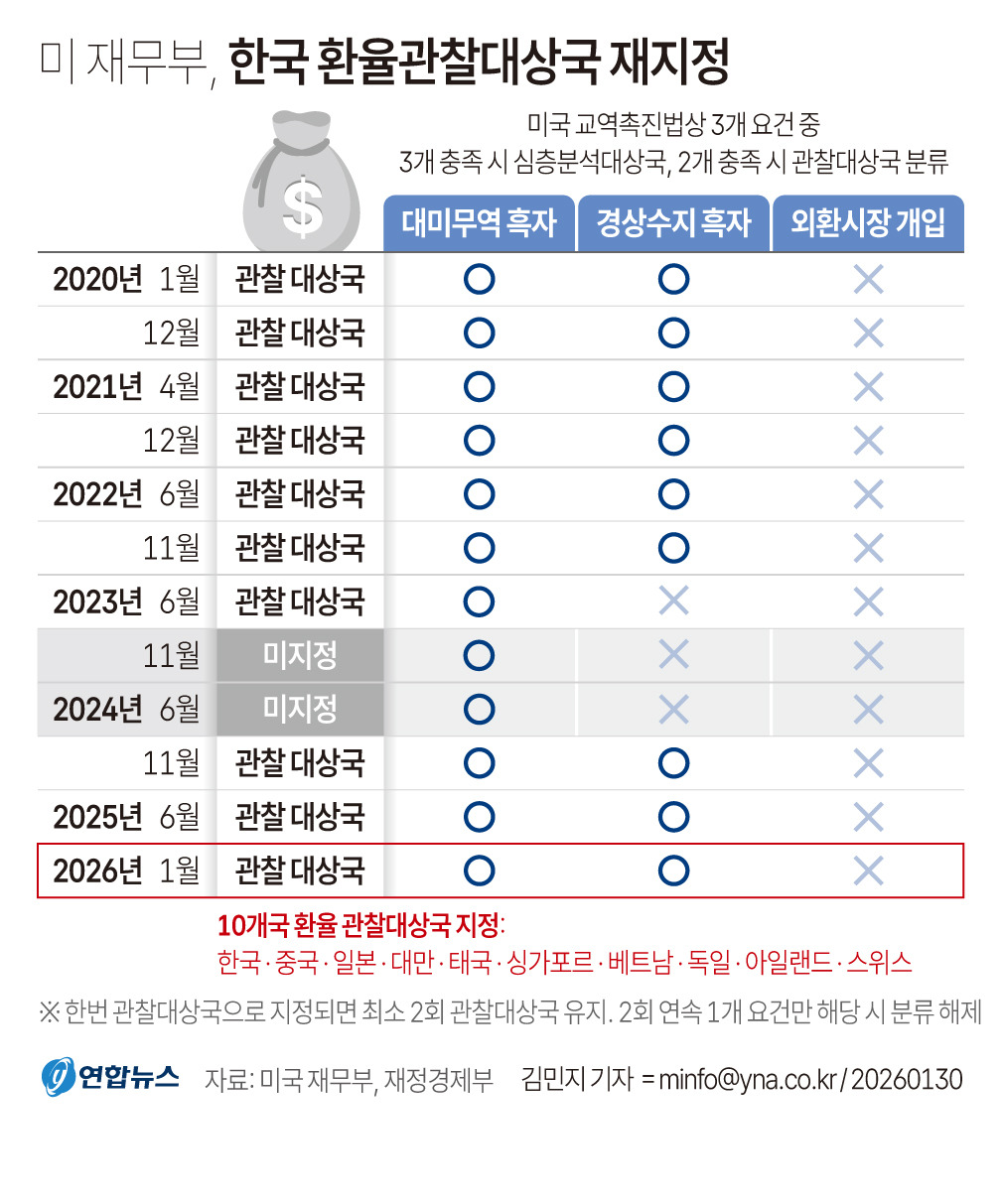 환율 관찰대상국 재지정 이후 투자자가 주기적으로 확인해야 할 항목은 다음과 같다.